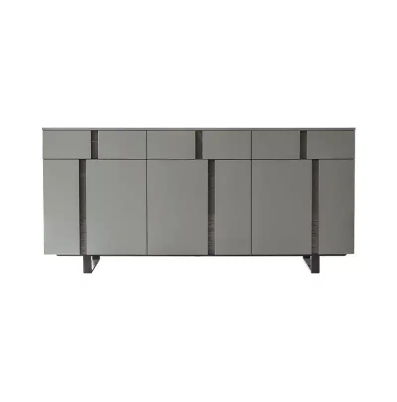 Essential geometries and original lines: the decorative elements, which can be personalised with multiple finishes, move to the doors and drawers, giving the sideboard a strong graphic impact.