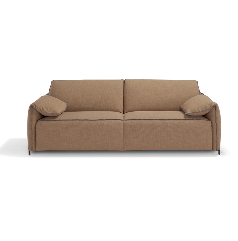 Sofa bed with memory foam seat. The 13 cm mattress, 210 cm deep, blends with the essential design, transforming rest into an experience of pure lightness.