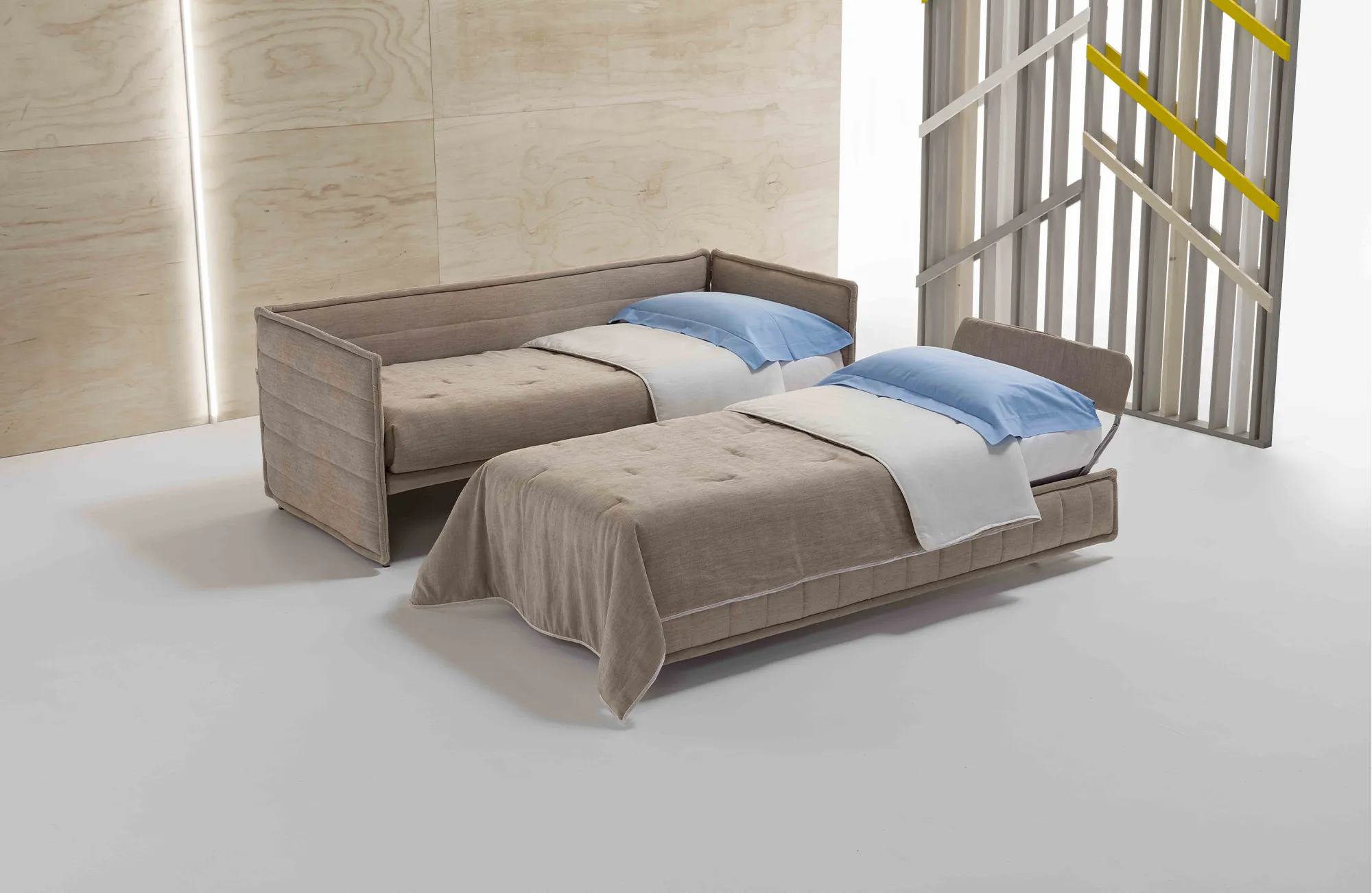 With its pull-out system, it reveals a second bed that combines functionality and comfort. The 16 cm mattress ensures optimal rest without compromising style.