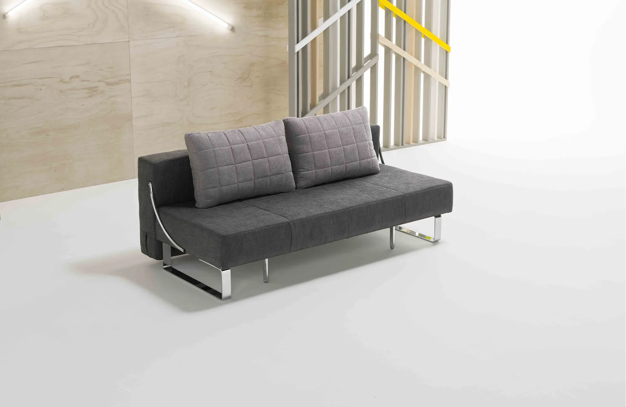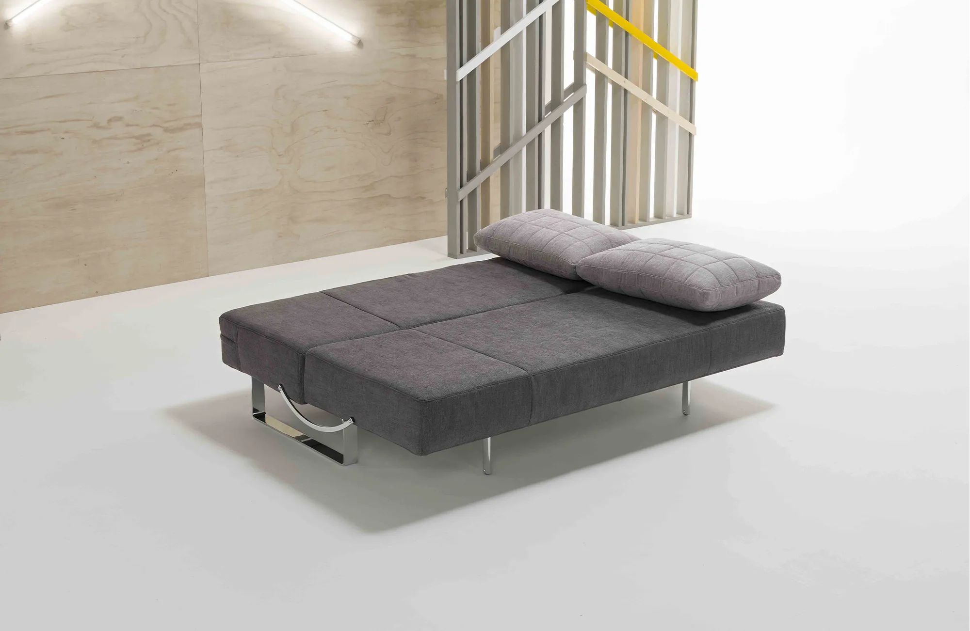 Nikita is a convertible sofa bed. Thanks to the sliding movement of the seat forward, the sofa is easily transformed into a comfortable bed. The seat itself becomes the mattress, while the backrests, made of goose down, can be used as comfortable pillows for optimal rest.