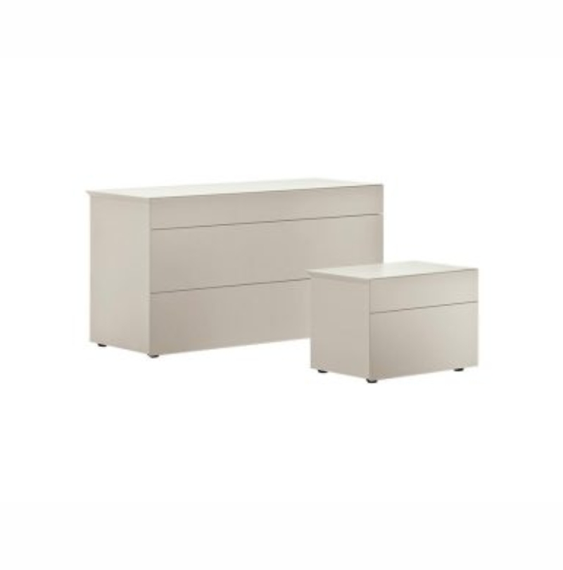 At first sight this set of furniture stands out for its linearity but at a closer look its character is enhanced by the oblique slant of the drawer and of the top panel. This versatile model is perfect for any style of bedroom.