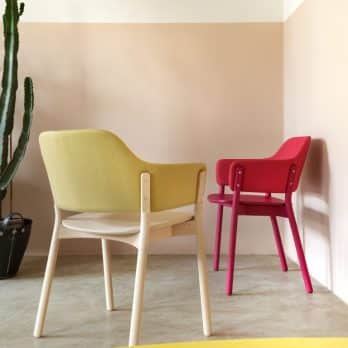 كرسي بذراعين بهيكل من خشب الزان. يمكن أن يكون المقعد ومسند الظهر من الخشب الرقائقي أو مغطى بالقماش أو الجلد.