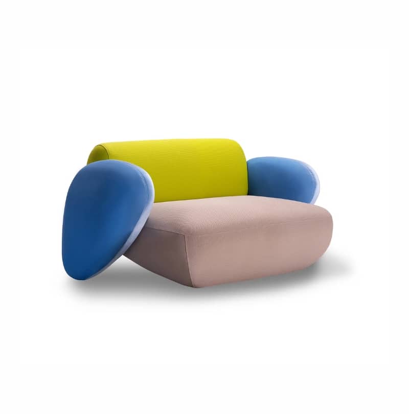 Playful, colorful, and full of pop spirit. Ciottolino features generous, padded forms reminiscent of smooth pebbles. A laid-back lounge chair that brings comfort, freshness, and a vibrant attitude.