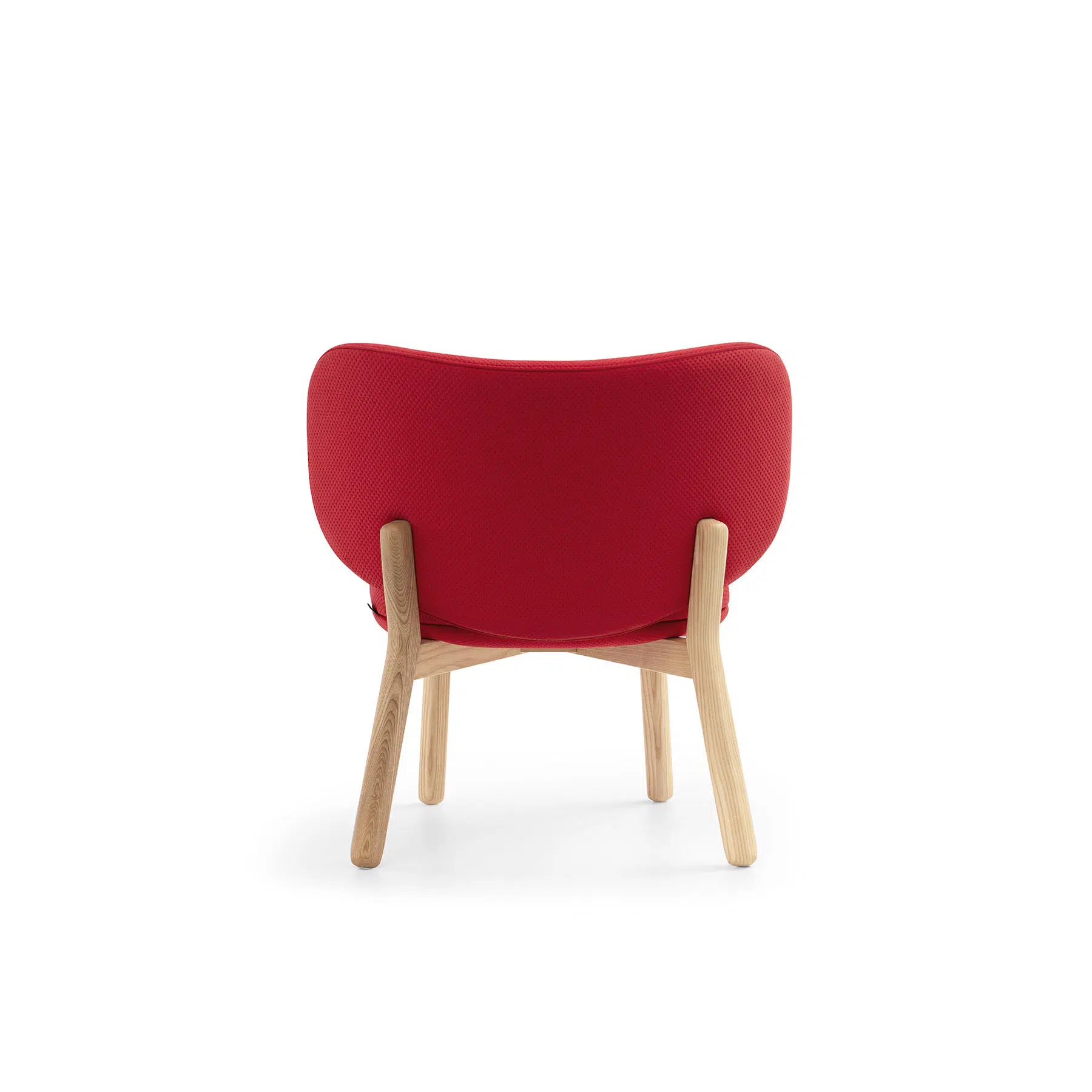 Expressive and compact design. The generous, rounded backrest evokes an open flower, while its light wood base adds a warm, natural touch. Its shape is pure visual power: compact, robust and perfectly proportioned. Noa brings a vibrant accent to any environment, with friendly, vibrant shapes that stand out for their playful, contemporary character.