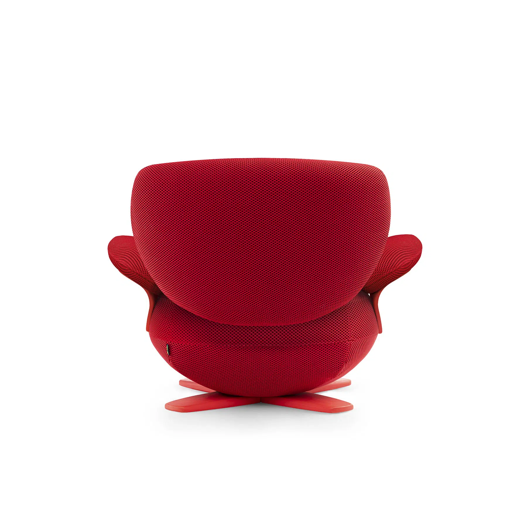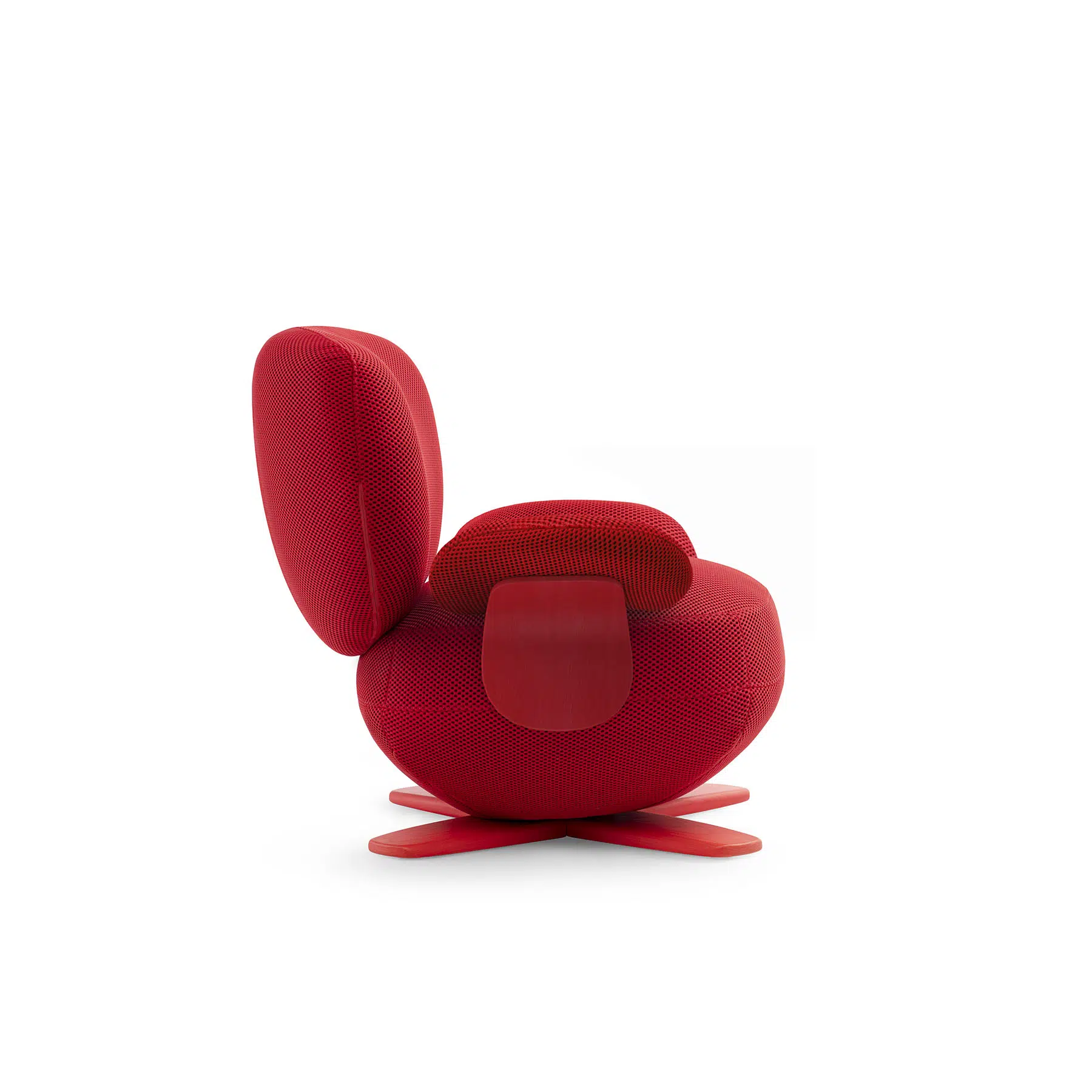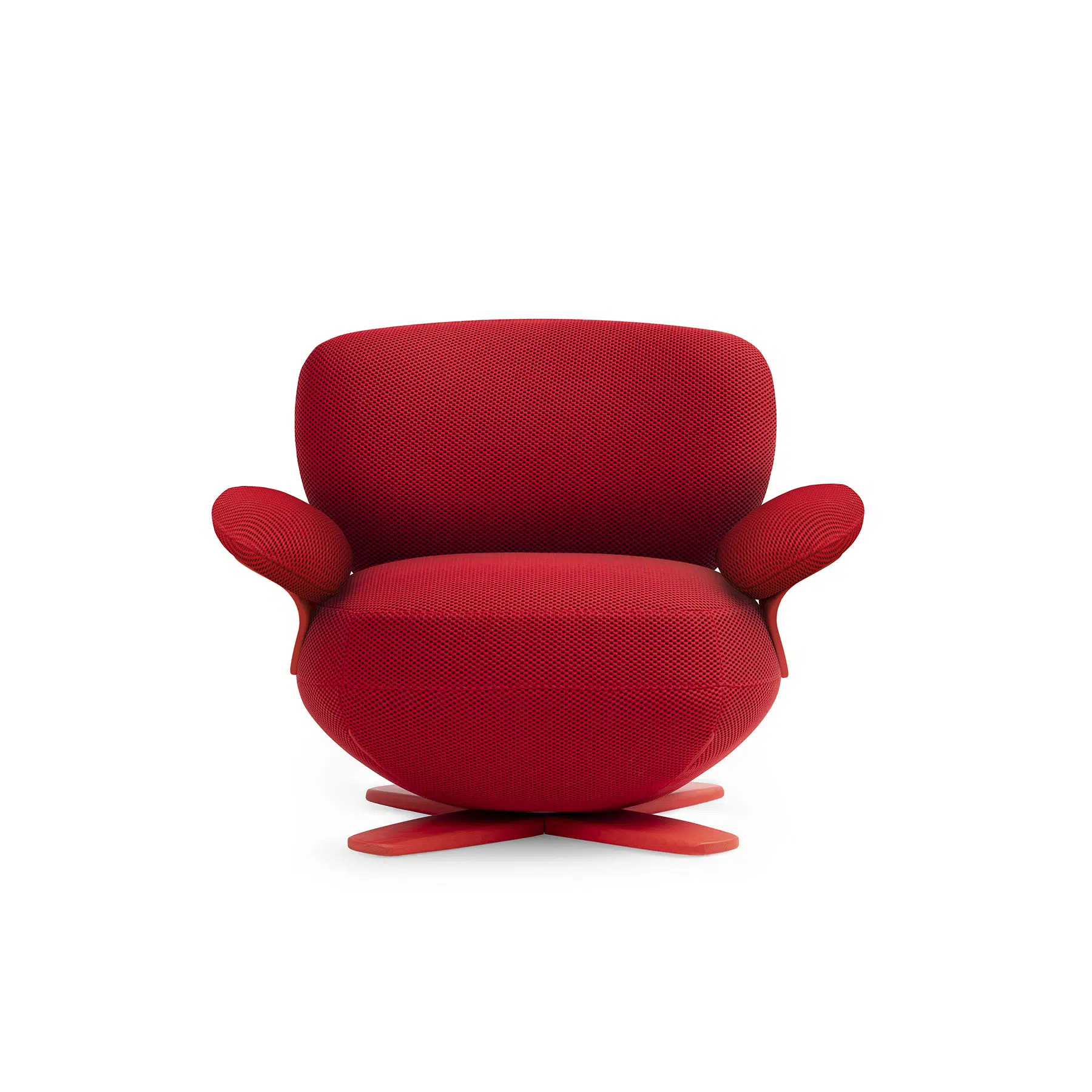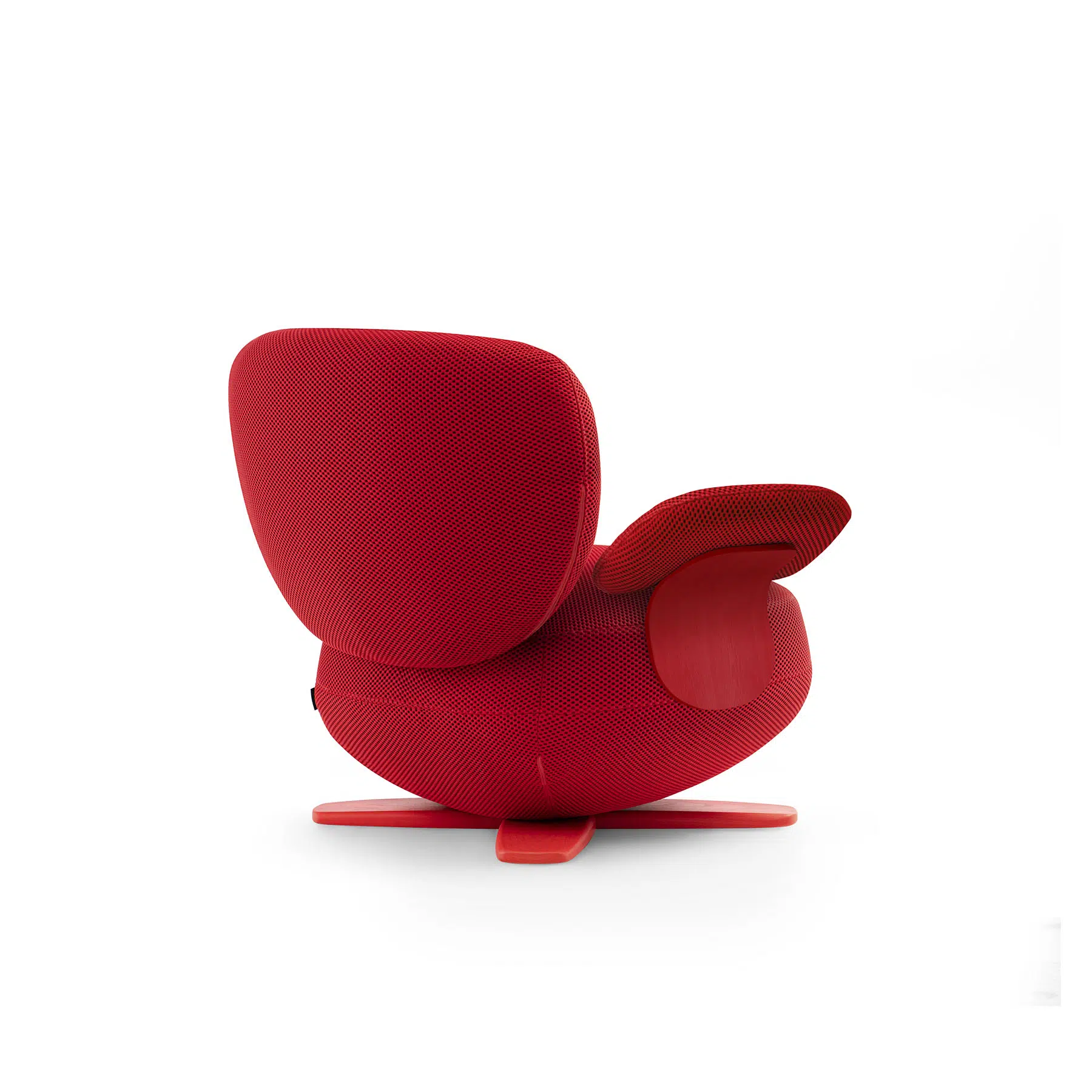 Its distinctive armrests, designed as natural extensions of the backrest, provide a friendly and welcoming gesture. A vibrant piece that combines comfort and character with originality.