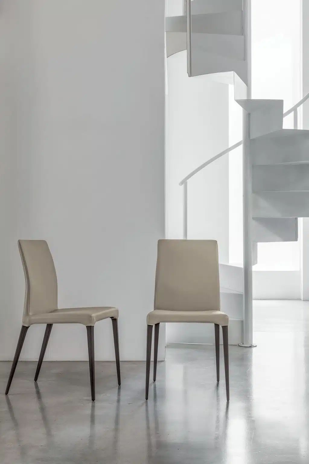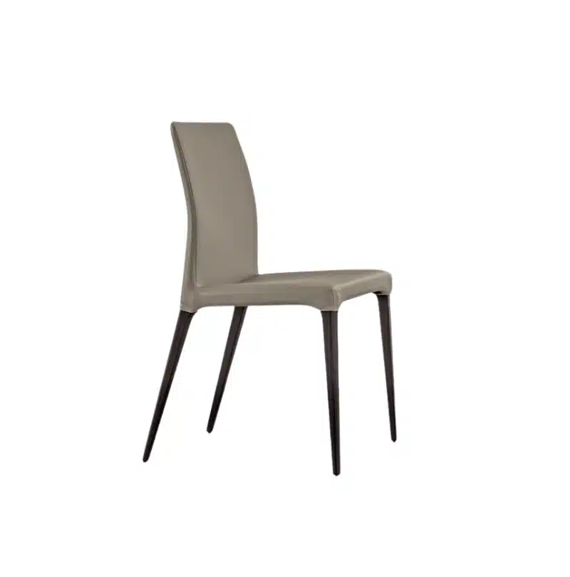 A sleek silhouette for a chair whose design is extremely elegant: thanks to the angled legs and the curved backrest, it moves easily in any space with class.