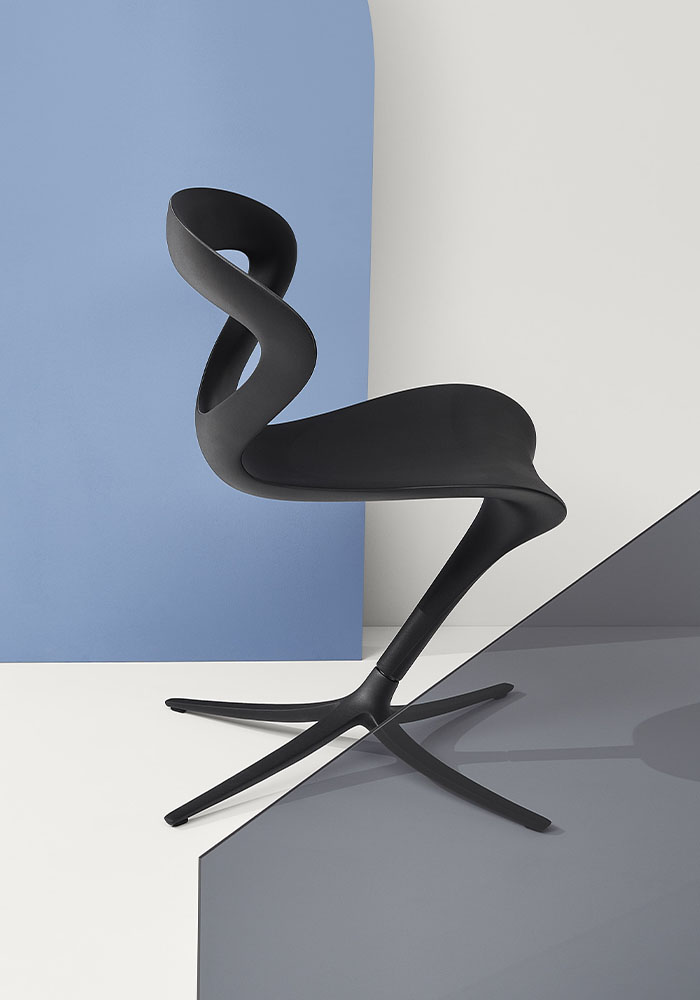 Crafted with precision in Italy, the chair’s unique form creates an interplay of full and empty spaces, blending lightness and strength in perfect proportion.