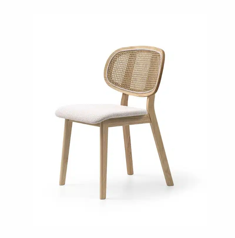 The Viena chair combines tradition and freshness with a timeless design. Its natural mesh backrest provides visual lightness and a handcrafted look, while the upholstered seat offers a pleasant comfort.