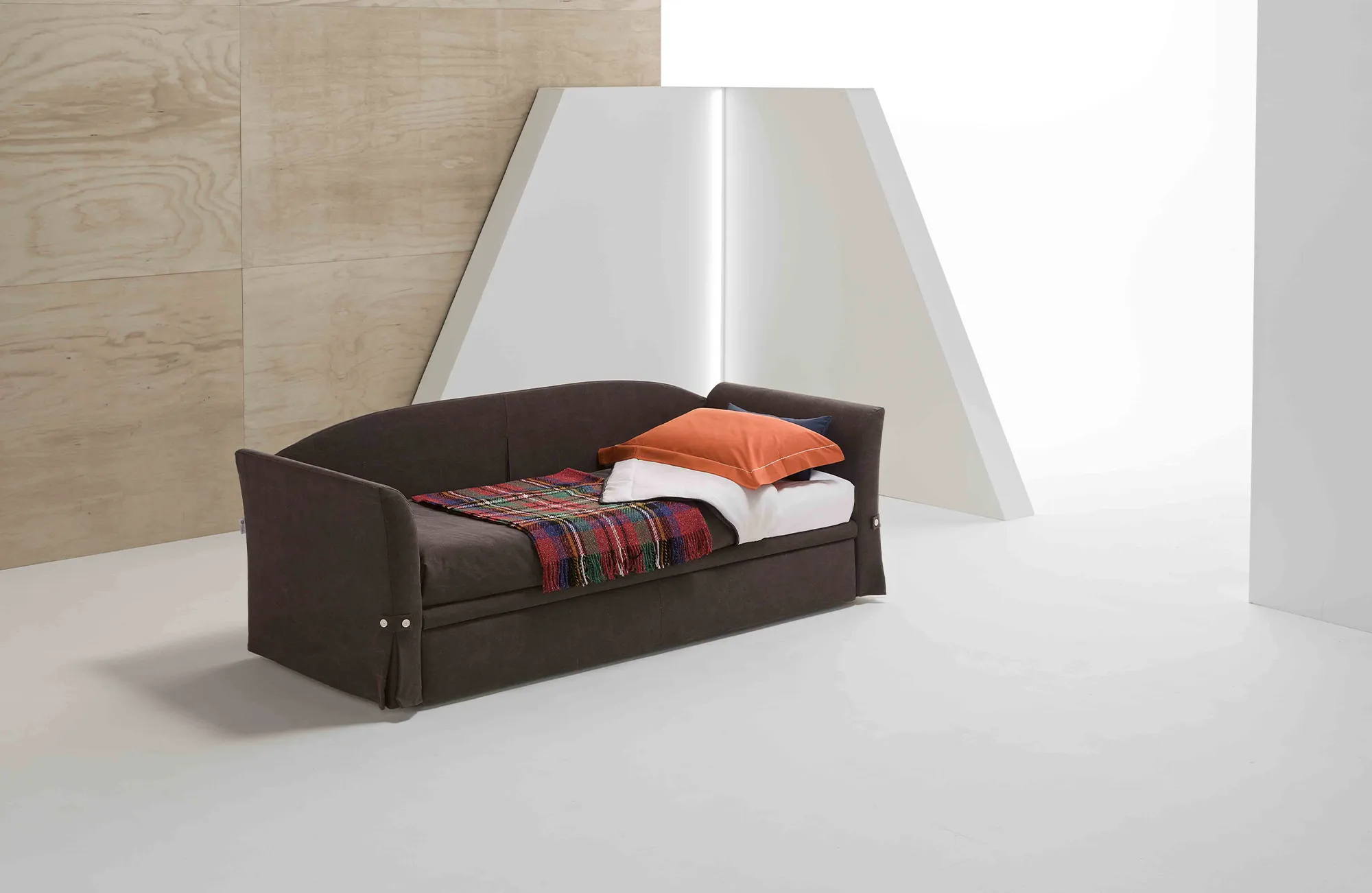 Carol blends harmoniously into any environment. Its practical pull-out system allows easy transformation into a comfortable double bed, while the 16-cm mattress ensures optimal rest.