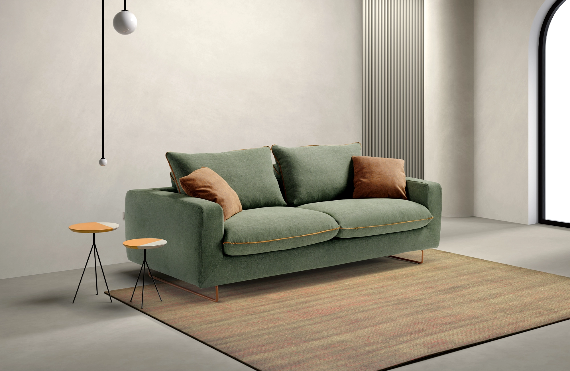 Sofa bed with backrests and seat made of goose down. 13 cm mattress and iron foot giving comfort and minimal design.