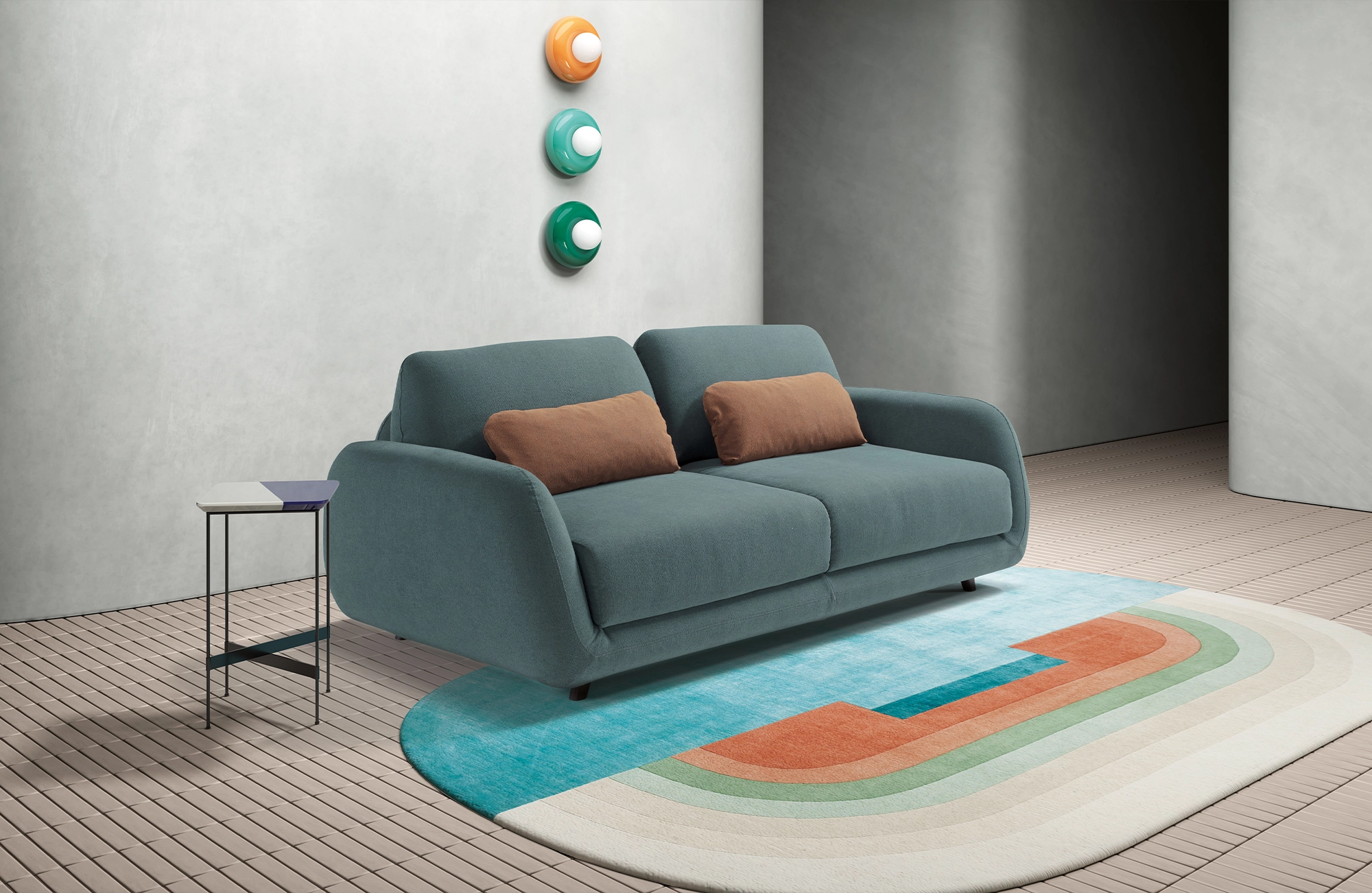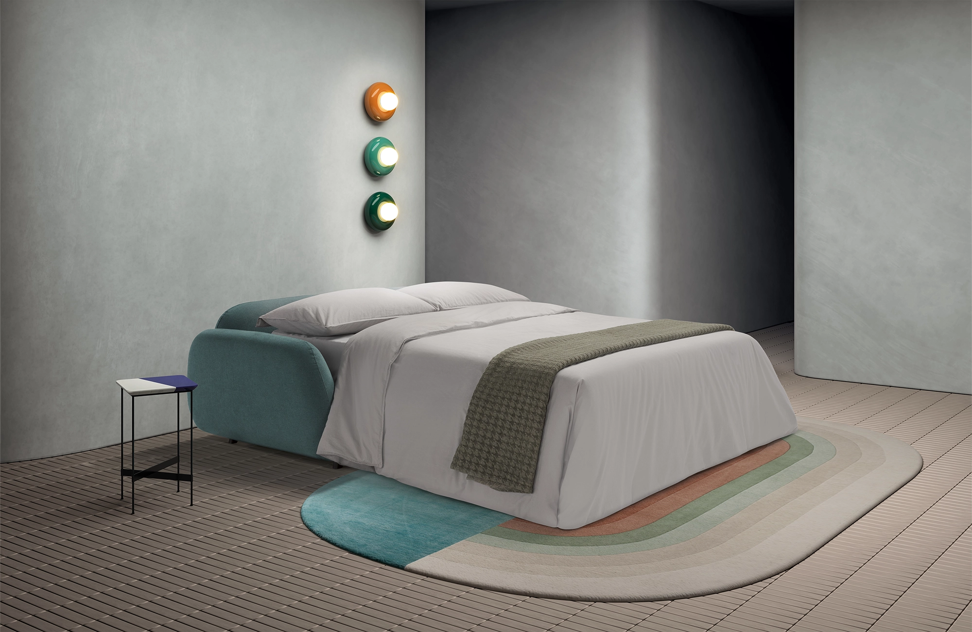 Sofa bed with 13 cm mattress and wooden foot available in beech, walnut or wenge. A perfect balance of natural warmth and essential design.