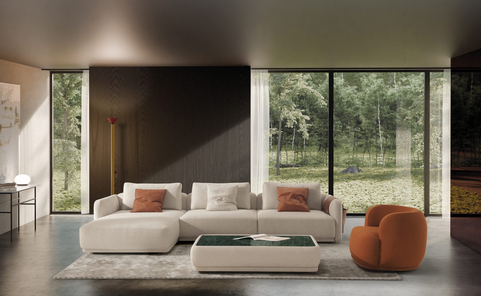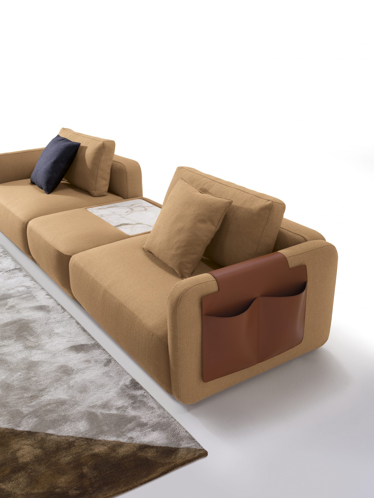 The Italian sofa offers a timeless style that emphasizes clean lines and ideal proportions is brought to the living room by this modular upholstery system.