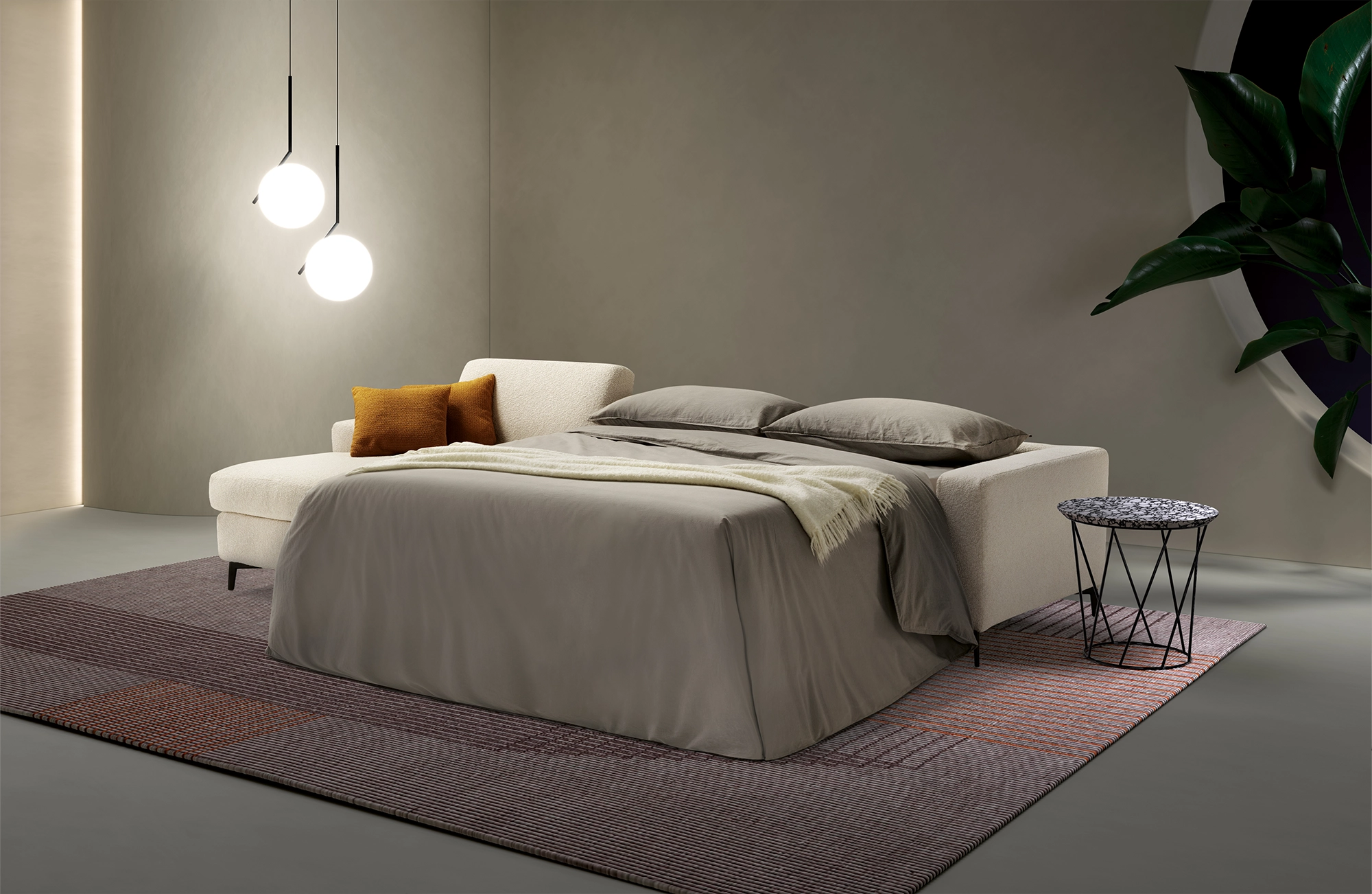 Sectional sofa bed with chaise longue storage, perfect for every space requirement. The 13 cm mattress ensures a comfortable rest.
