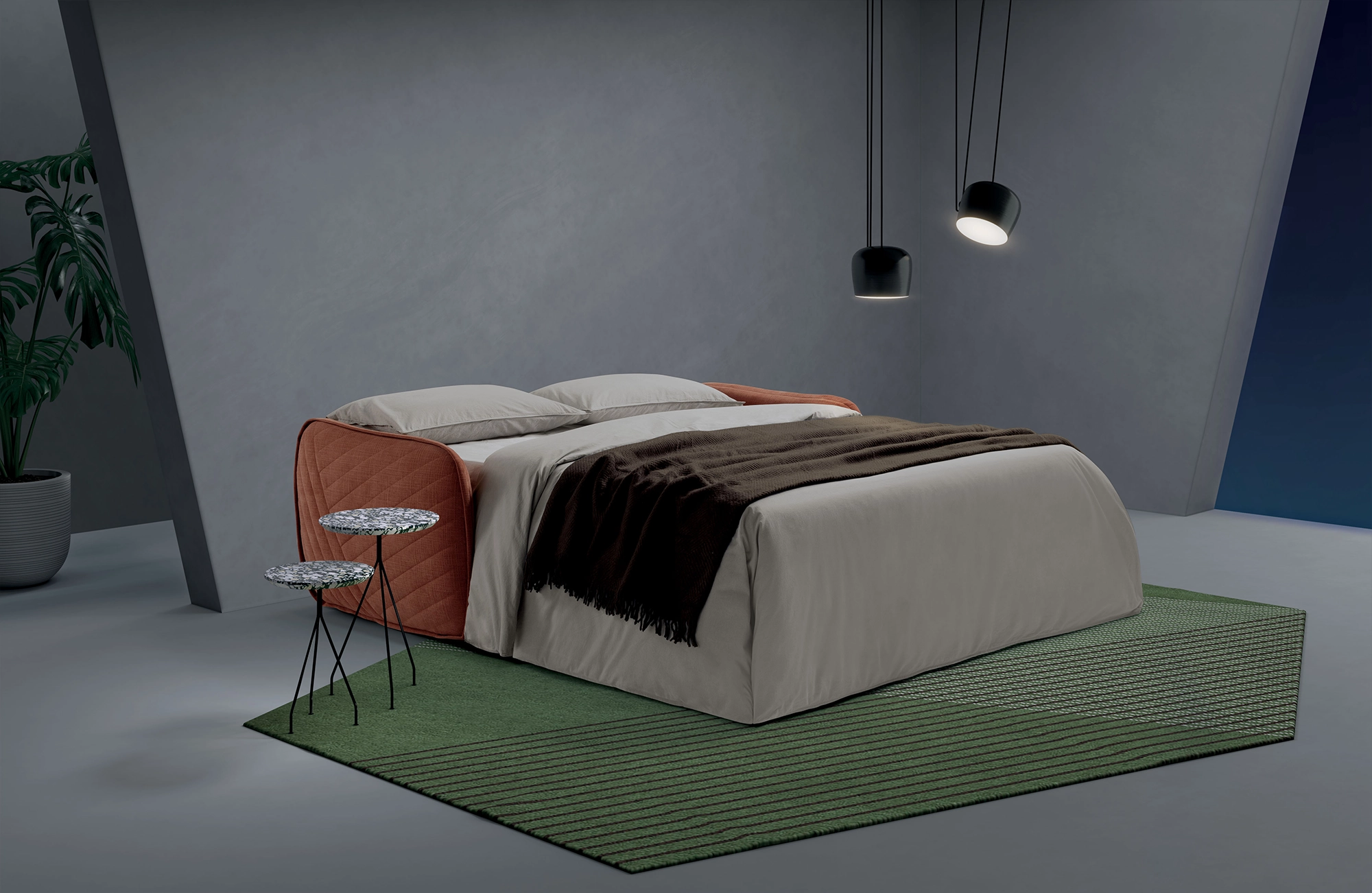 Sofa bed with 17 cm mattress, also available in a quilted version to add a custom touch to your product.