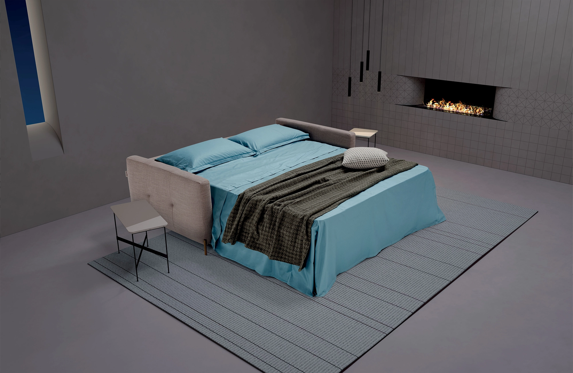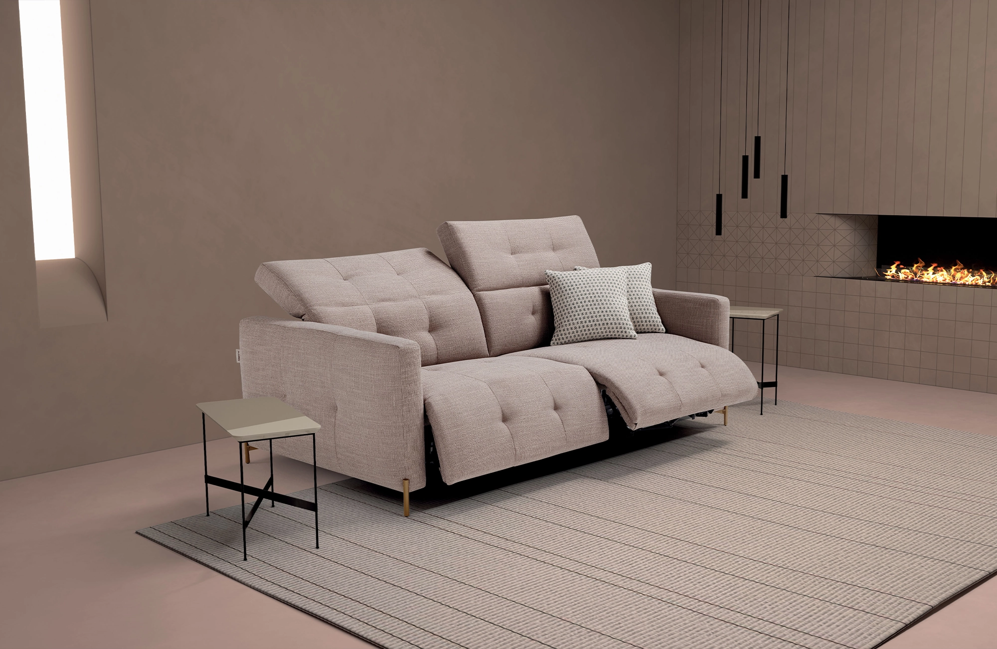 Sofa bed with a 13-cm mattress, featuring an adjustable backrest in various angles and a recliner system that transforms the sofa into a corner of pure well-being.