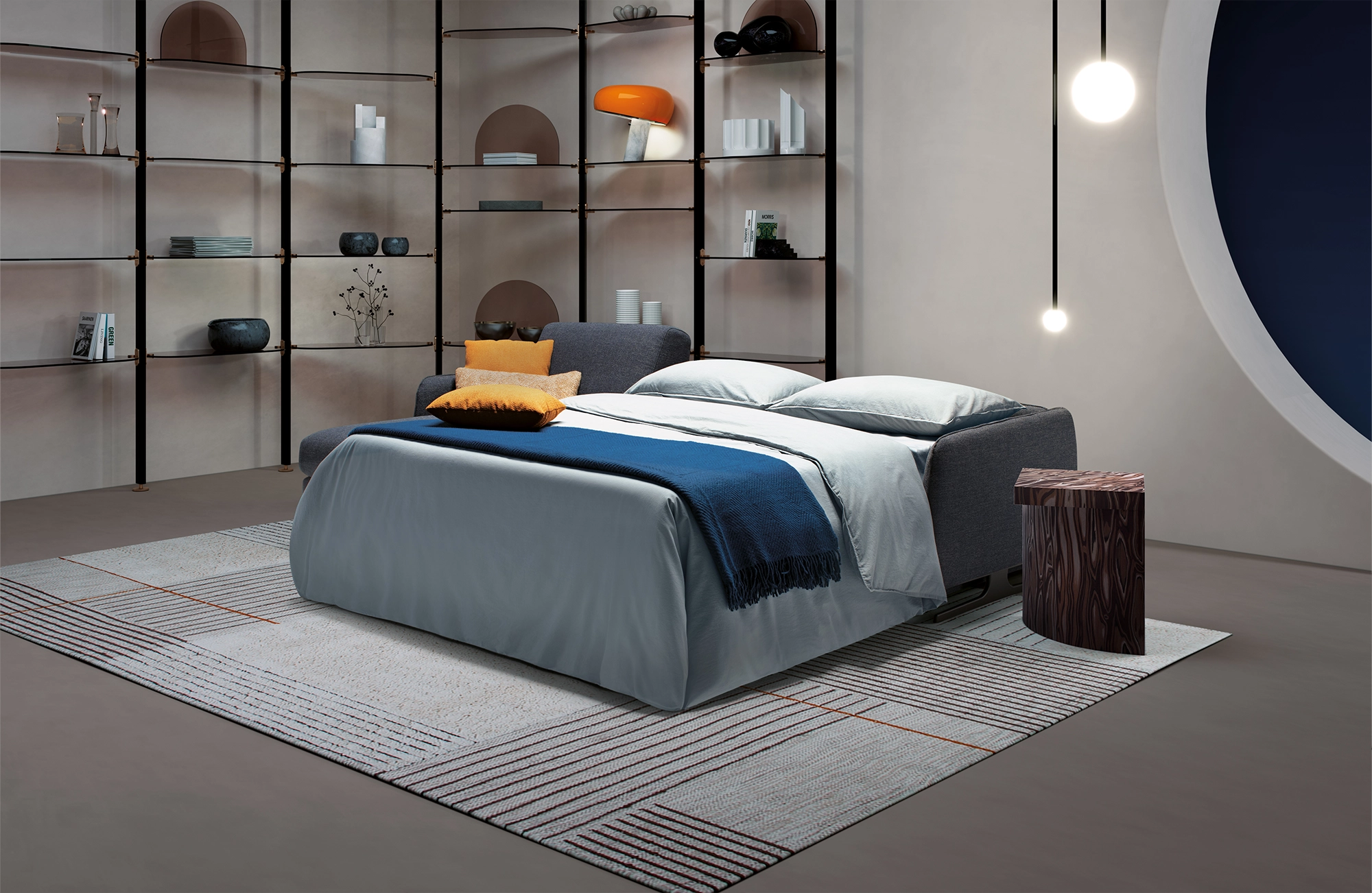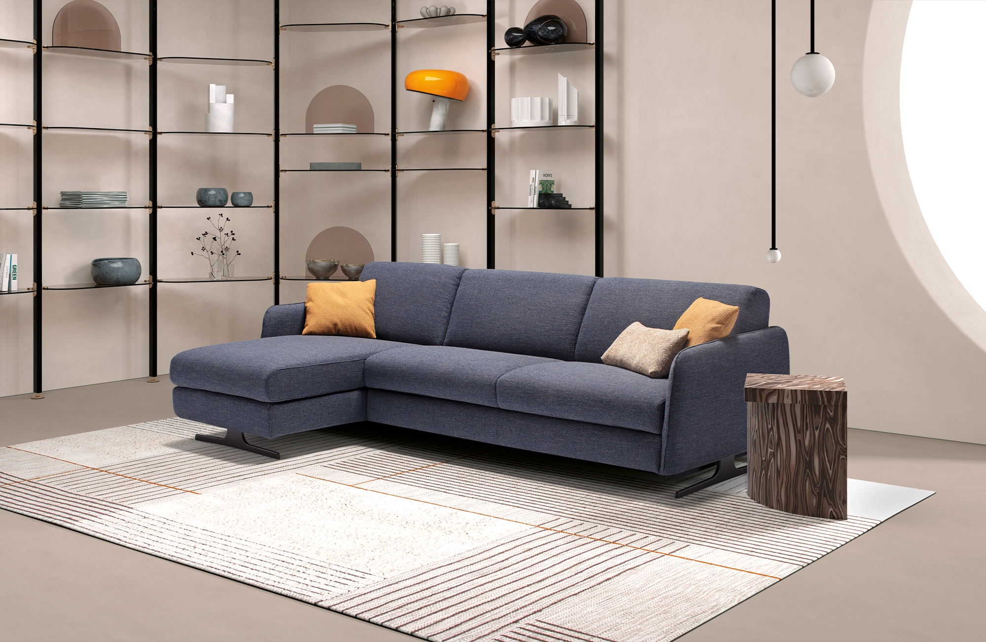Sectional sofa bed with chaise longue storage element, 13 cm mattress and 13 cm foot: a design that combines functionality and versatility.