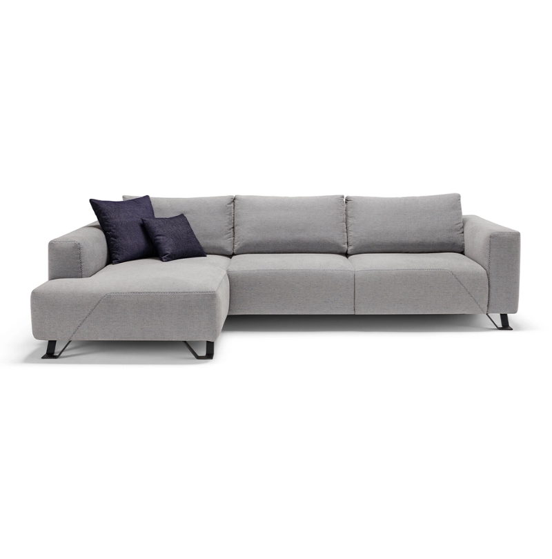 Modular sofa bed with chaise longue element, featuring a 13 cm mattress. The backrest, adjustable to two different angles, allows you to customize the seat depth.