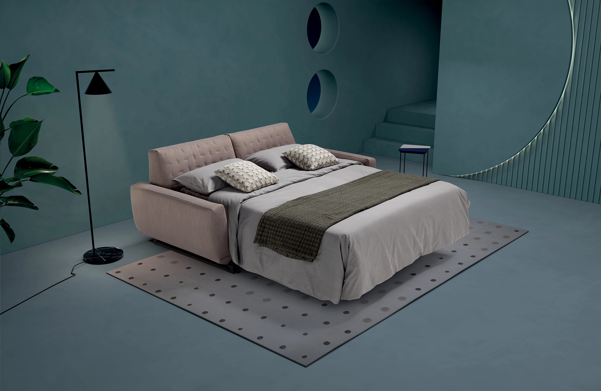 Sofa bed with a 16 cm mattress, designed for optimal comfort. The sliding backrest allows for seat depth adjustment.